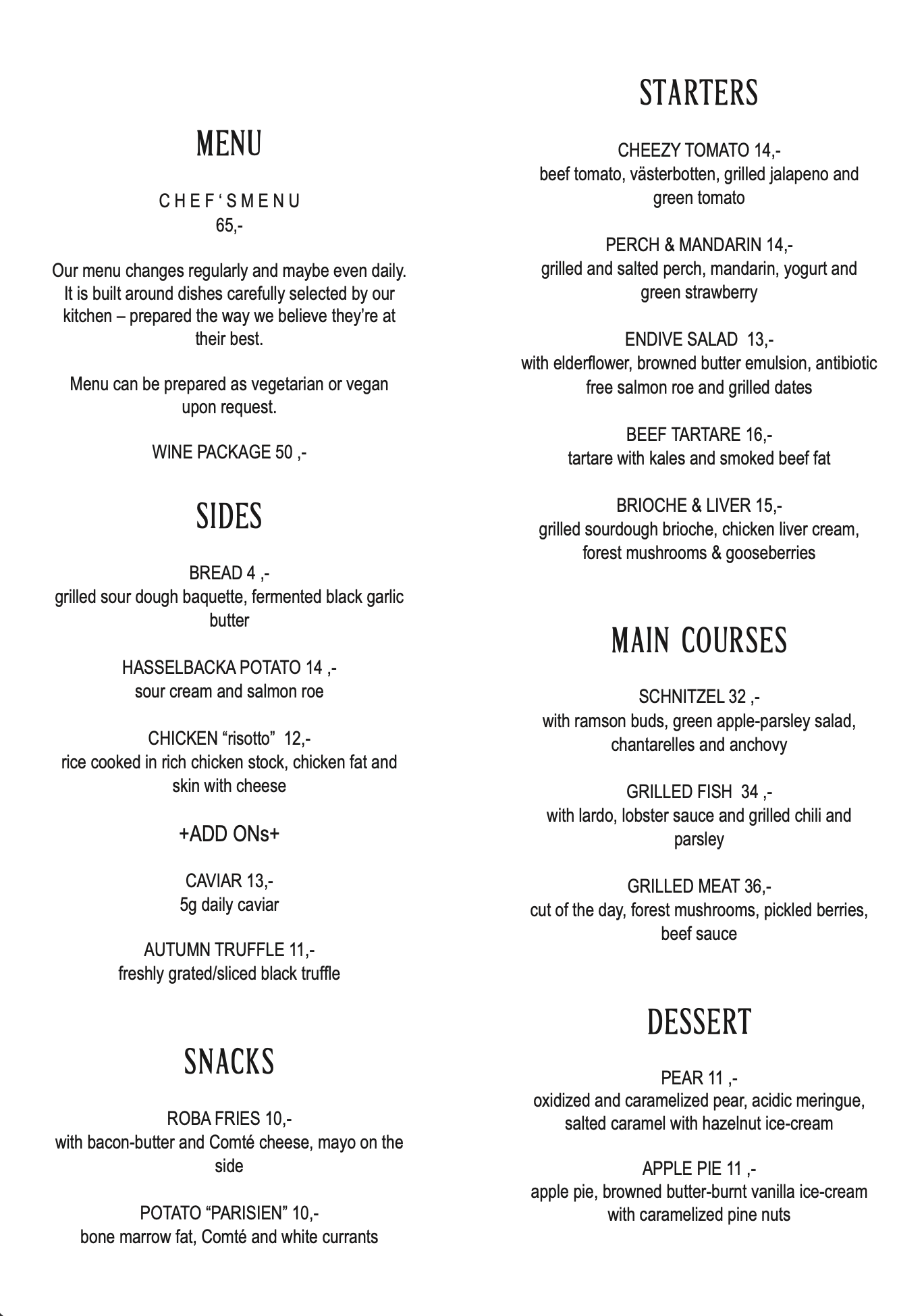 Our menu is ever-changing, shaped by the ingredients we're able to source at any given time. We work closely with producers and embrace what the season — and the day — has to offer.
